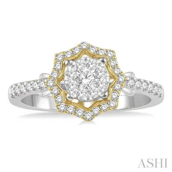 (319) 752-31961/2 Ctw Star Shape Lovebright Round Cut Diamond Ring in 14K White and Yellow Gold