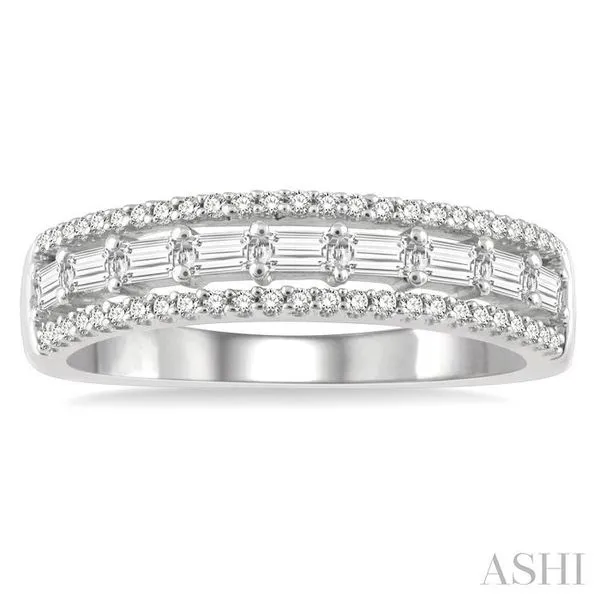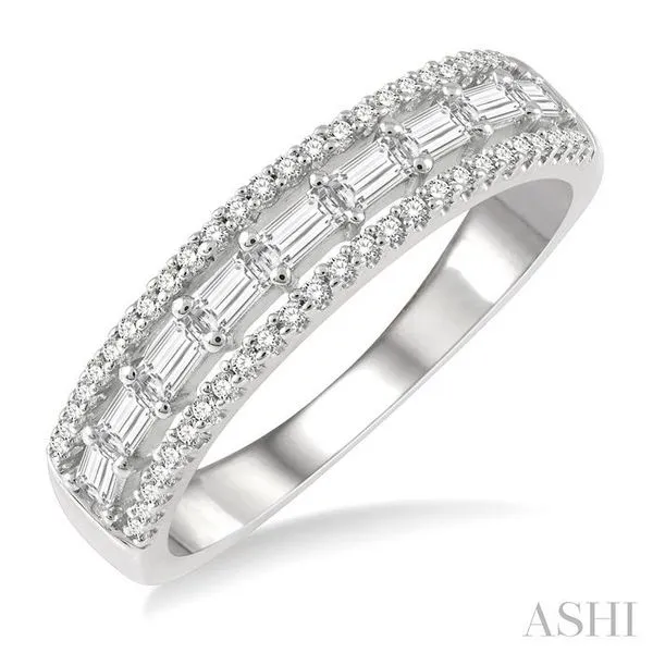 (319) 752-31961/2 Ctw Triple Row Baguette and Round Cut Diamond Fashion Band in 14K White Gold
