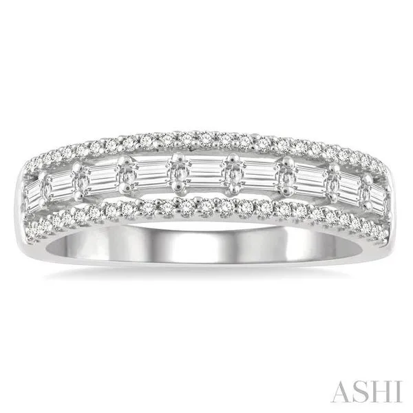 1/2 Ctw Triple Row Baguette and Round Cut Diamond Fashion Band in 14K White Gold Image 2 Becker's Jewelers Burlington, IA