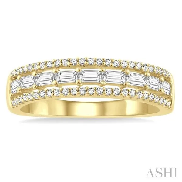1/2 Ctw Triple Row Baguette and Round Cut Diamond Fashion Band in 14K Yellow Gold Image 2 Becker's Jewelers Burlington, IA