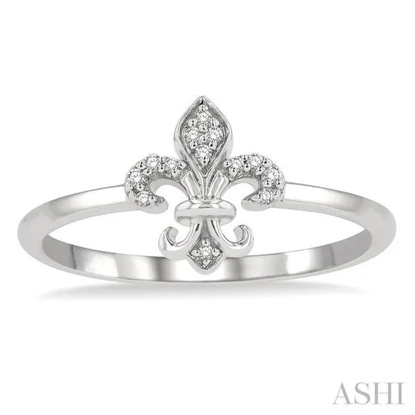 (319) 752-31961/20 Ctw Fleur De Lis Single Cut Diamond Petite Fashion Ring in 10K White Gold