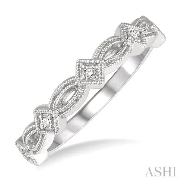 (319) 752-31961/20 Ctw Interlinking Marquise & Rhombus Mount Round Cut Diamond Stackable Band in 14K White Gold