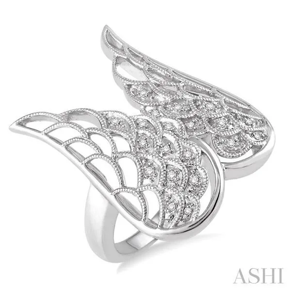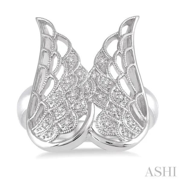 (319) 752-31961/20 Ctw Round Cut Diamond Angel Wing Ring in Sterling Silver