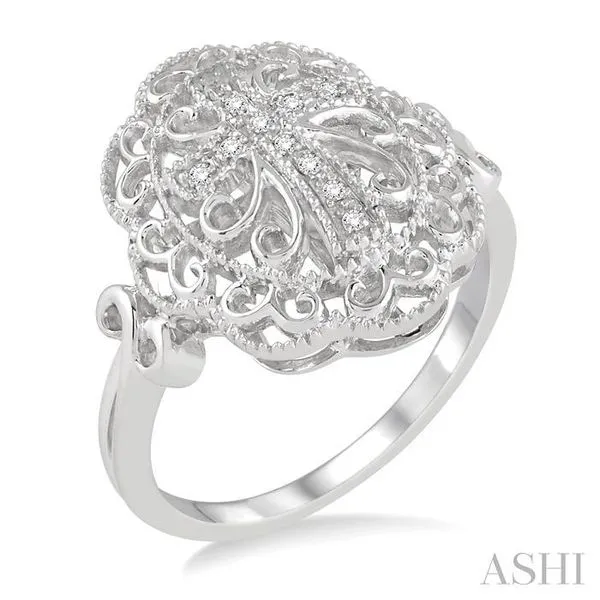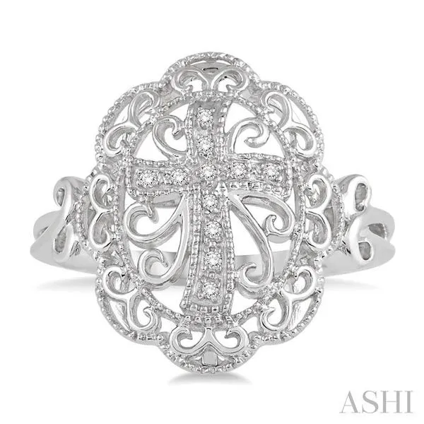 (319) 752-31961/20 Ctw Round Cut Diamond Cross In Oval Ring in Sterling Silver