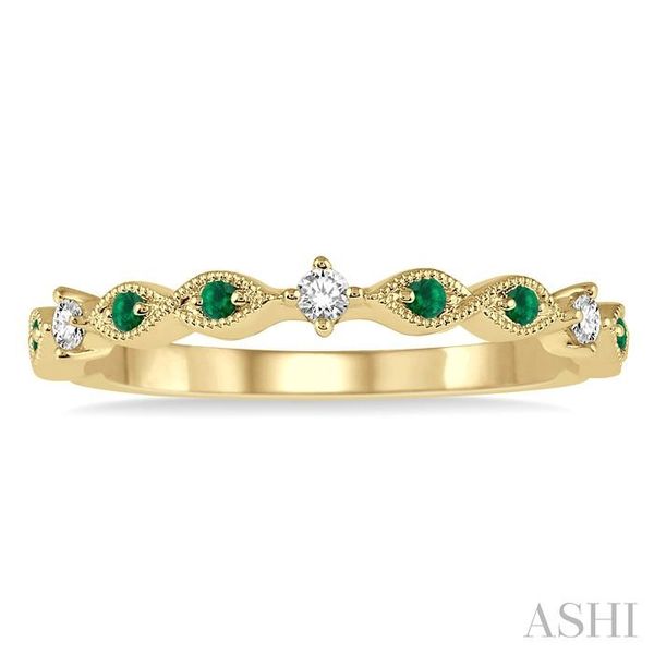 1.25 MM Round Cut Green Emerald and 1/20 Ctw Round Cut Diamond Precious Half Eternity Wedding Band in 14K Yellow Gold Image 4 Becker's Jewelers Burlington, IA