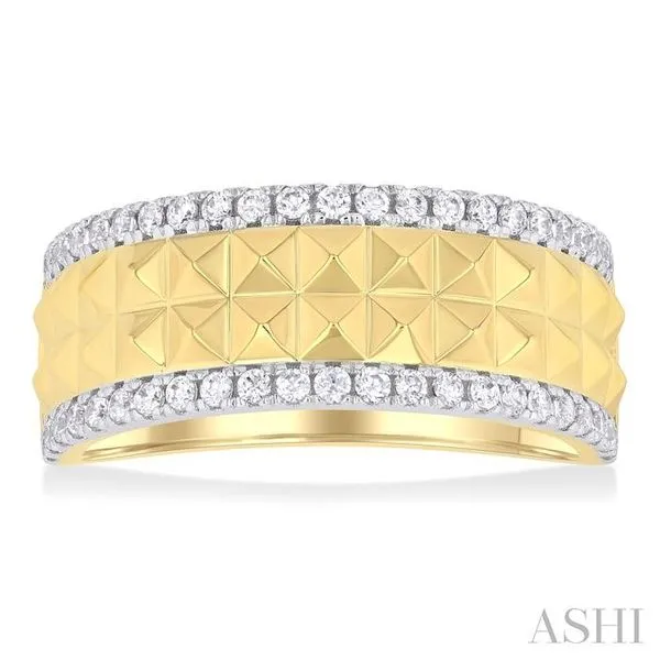(319) 752-31961/3 Ctw Double Pyramid Row Round Cut Diamond Fashion Wide Band in 14K Yellow Gold