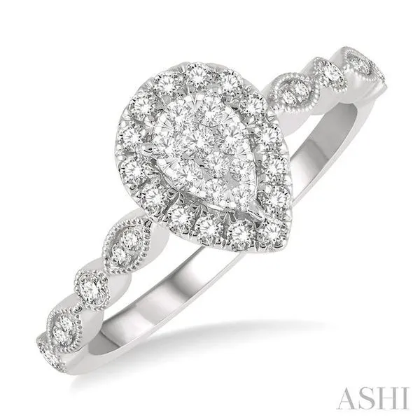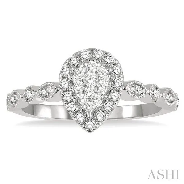 (319) 752-31961/3 Ctw Lattice Pear Shape Lovebright Round Cut Diamond Engagement Ring in 14K White Gold