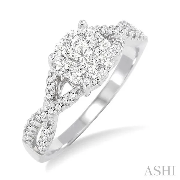 3. 1/3 Ctw Lovebright Round Cut Diamond Engagement Ring in 14K White Gold