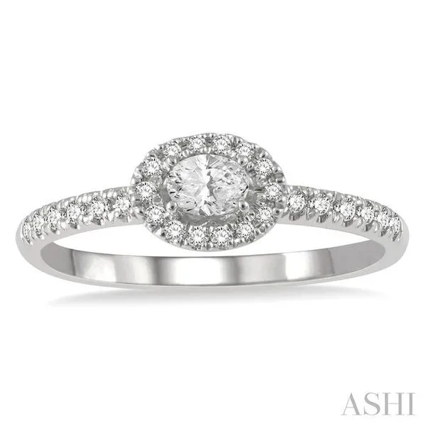 (319) 752-31961/3 Ctw Oval Shape Round Cut Diamond Fashion Petite Ring with 1/6 Ct Oval Cut Center Stone in 14K White Gold