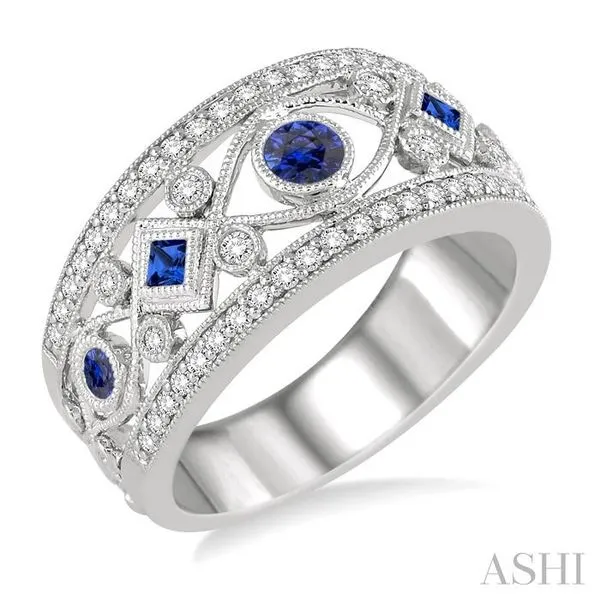 (319) 752-31961/3 Ctw Round Cut Diamond and Princess & Round Cut Sapphire Precious Band in 14K White Gold