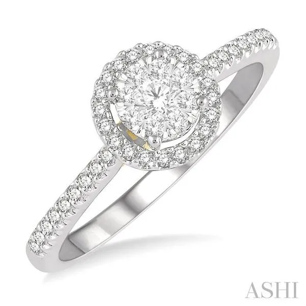 3. 1/3 Ctw Round Diamond Lovebright Halo Engagement Ring in 14K White and Yellow Gold