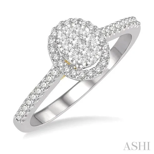 (319) 752-31961/3 Ctw Round Diamond Lovebright Oval Shape Halo Engagement Ring in 14K White and Yellow Gold