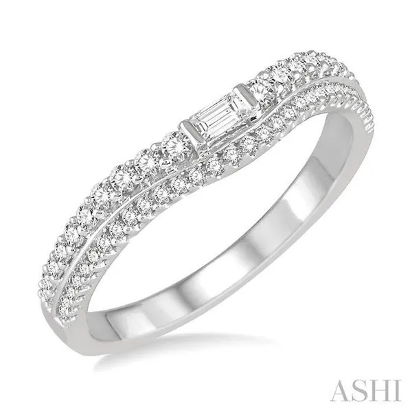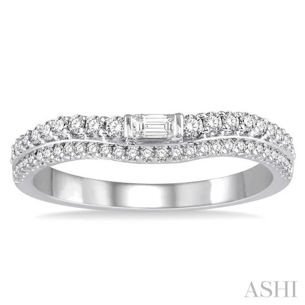 (319) 752-31961/3 Ctw Step Shank Baguette Center Round Cut Diamond Wedding Band in 14K White Gold