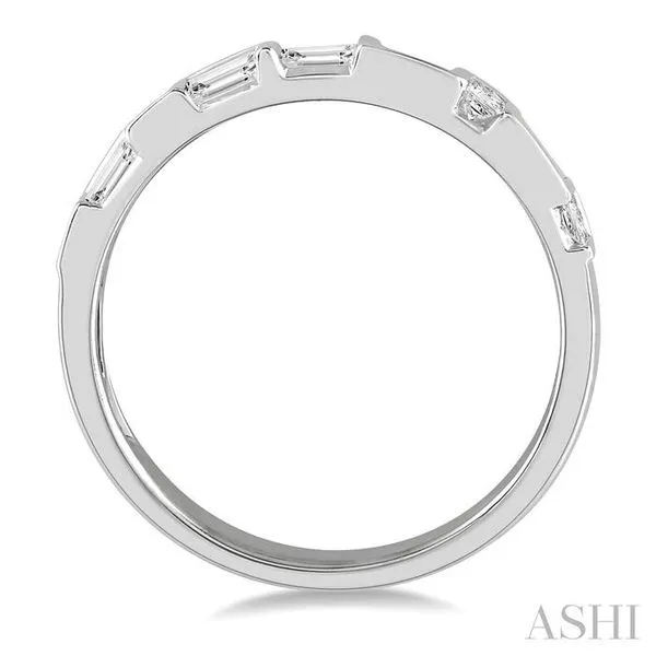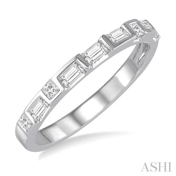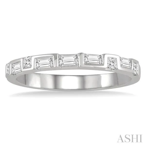 (319) 752-31961/3 Ctw Zigzag Filled Baguette and Princess Cut Diamond Wedding Band in 14K White Gold
