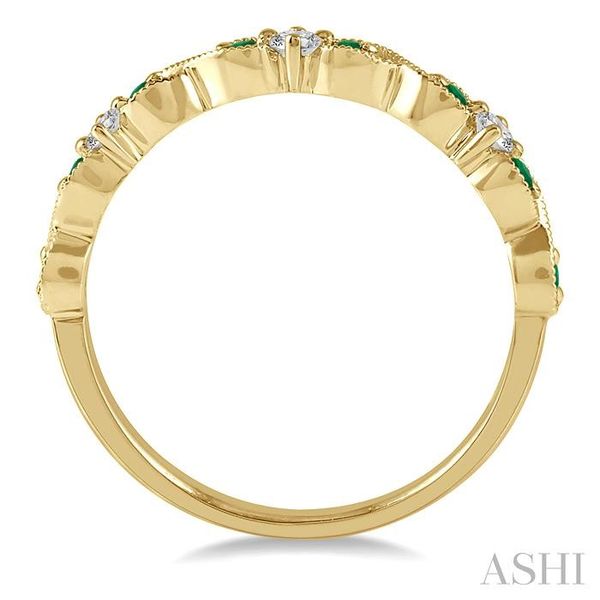 1.35 MM Emerald and 1/10 Ctw Round Cut Diamond Precious Wedding Band in 14K Yellow Gold Image 3 Becker's Jewelers Burlington, IA