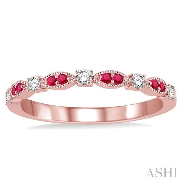 (319) 752-31961.35 MM Ruby and 1/6 Ctw Round Cut Diamond Precious Stone Wedding Band in 14K Rose Gold