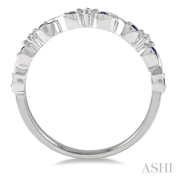 (319) 752-31961.35 MM Sapphire and 1/10 Ctw Round Cut Diamond Precious Wedding Band in 14K White Gold