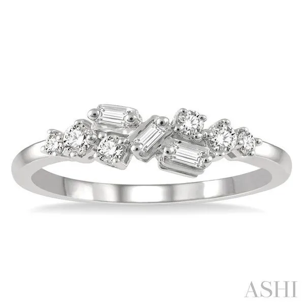 (319) 752-31961/4 Ctw Baguette and Round Cut Diamond Fashion Scatter Ring in 14K White Gold