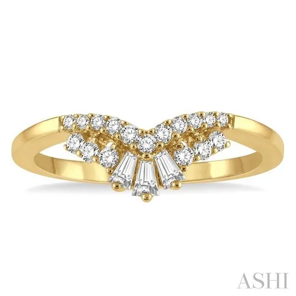 (319) 752-31961/4 Ctw Chevron Center Baguette and Round Cut Diamond Wedding Band in 14K Yellow Gold