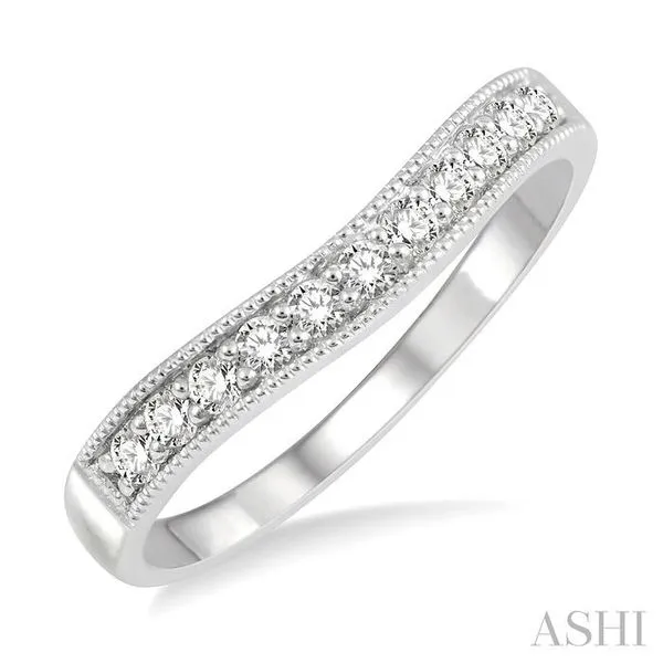 (319) 752-31961/4 Ctw Curved Center Milgrain Border Round Cut Diamond Wedding Band in 14K White Gold