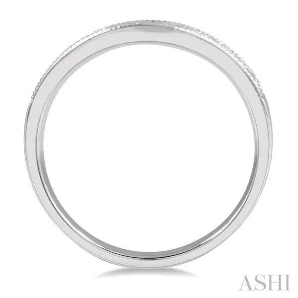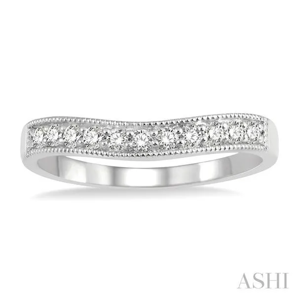(319) 752-31961/4 Ctw Curved Center Milgrain Border Round Cut Diamond Wedding Band in 14K White Gold