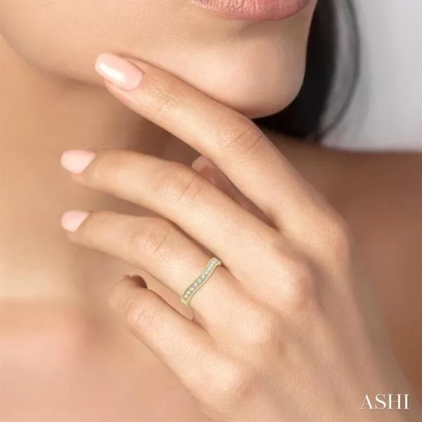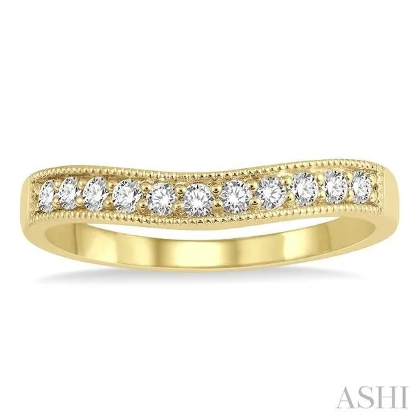 (319) 752-31961/4 Ctw Curved Center Milgrain Border Round Cut Diamond Wedding Band in 14K Yellow Gold