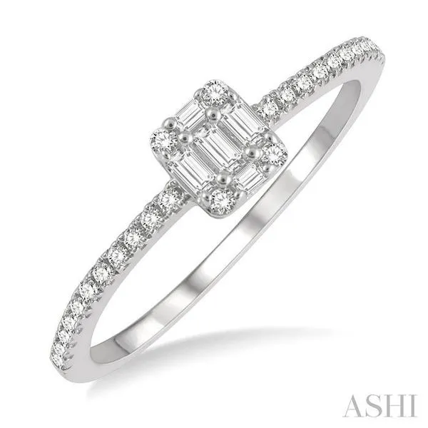 (319) 752-31961/4 Ctw Cushion Shape Petite Baguette and Round Cut Diamond Fashion Promise Ring in 14K White Gold