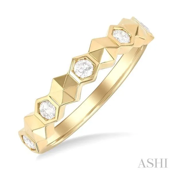 (319) 752-31961/4 Ctw Hexagon Shape Link Round Cut Diamond Fashion Ring in 14K Yellow Gold