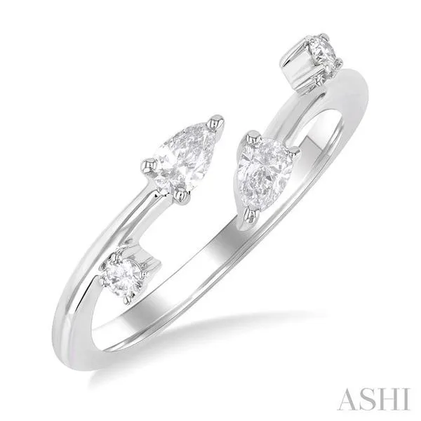 (319) 752-31961/4 Ctw Open Bypass Pear and Round Cut Diamond Fashion Ring in 14K White Gold
