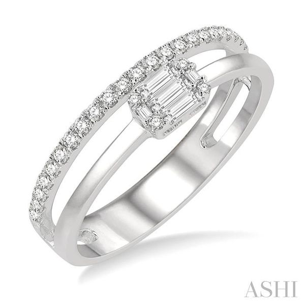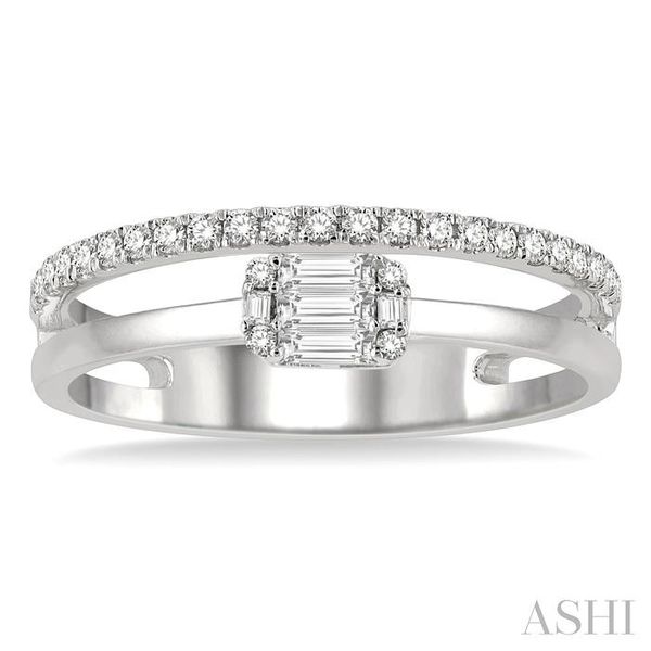 1/4 Ctw Twin Band Baguette and Round Cut Diamond Fusion Fashion Ring in 14K White Gold Image 2 Becker's Jewelers Burlington, IA
