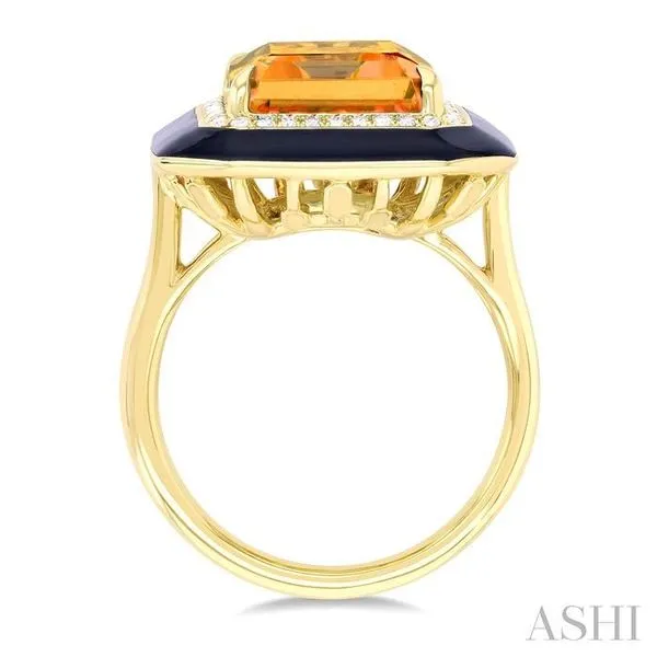 (319) 752-319614x10 MM Emerald Cut Citrine and 1/5 Ctw Round Cut Diamond Halo & Black Enamel Border Semi-Precious Ring in 14K Yellow Gold