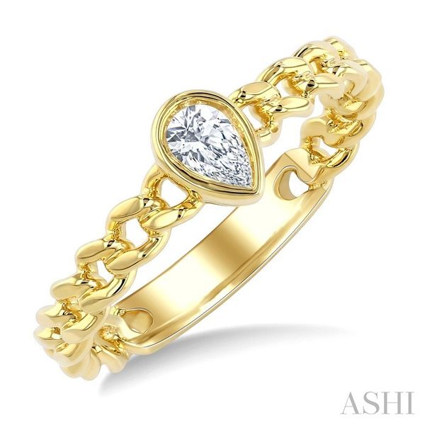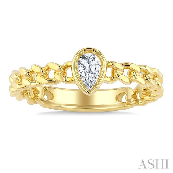 1/5 Ctw Bezel Set Pear Cut Diamond Curb Link Fashion Ring in 14K Yellow Gold Image 3 Becker's Jewelers Burlington, IA