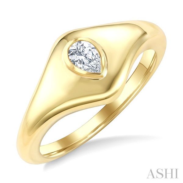 3. 1/5 Ctw Pear Cut Diamond Fashion Signet Ring in 10K Yellow Gold