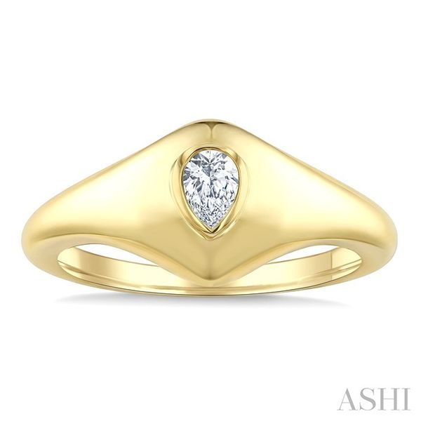 1/5 Ctw Pear Cut Diamond Fashion Signet Ring in 10K Yellow Gold Image 2 Becker's Jewelers Burlington, IA