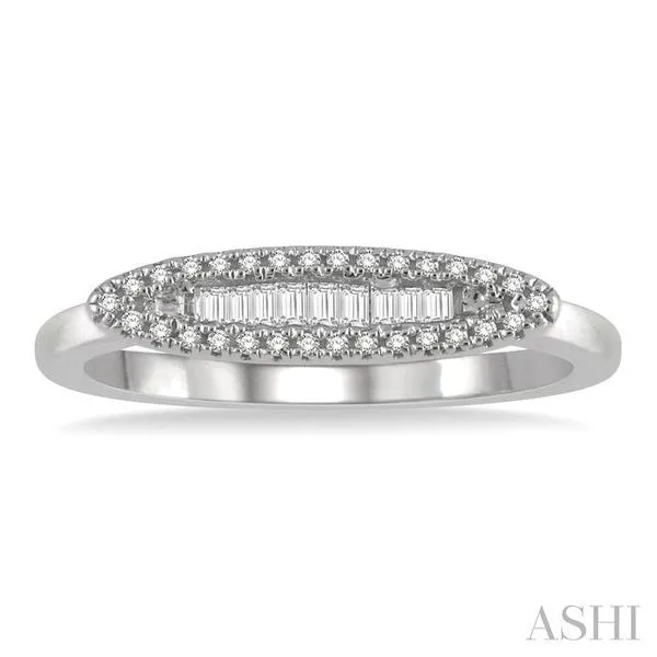 (319) 752-31961/5 Ctw Pod Center Baguette and Round Cut Diamond Stackable Petite Fashion Ring in 10K White Gold