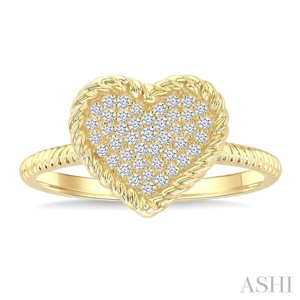 1/5 Ctw Round Cut Diamond Rope Border Heart Motif Fashion Ring in 10K Yellow Gold Image 3 Becker's Jewelers Burlington, IA