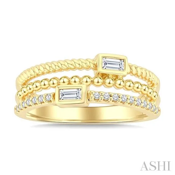 (319) 752-31961/5 Ctw Triple Row Baguette and Round Cut Diamond Fashion Band in 10K Yellow Gold