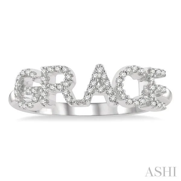 (319) 752-31961/5 Ctw'GRACE' Block Name Round Cut Diamond Ring in 10K White Gold
