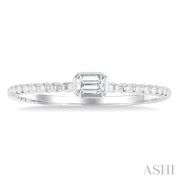 (319) 752-31961/6 Ctw Ball Bead East-West Bezel Set Emerald Cut Diamond Stackable Petite Fashion Ring in 14K White Gold