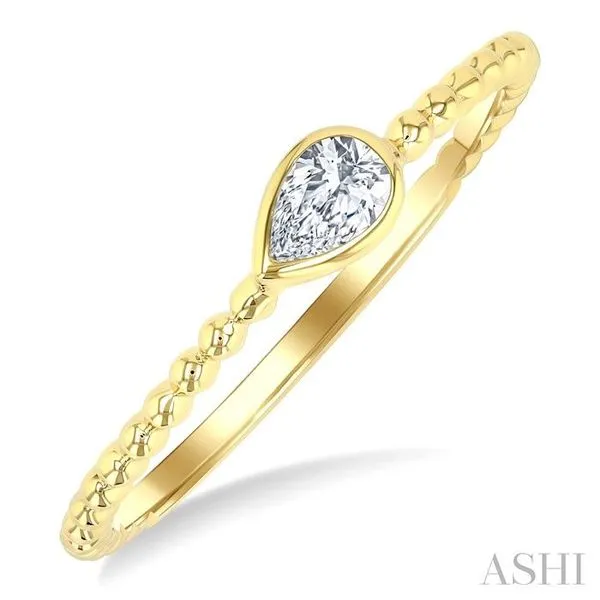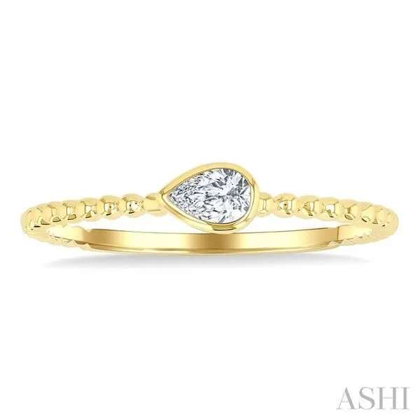 (319) 752-31961/6 Ctw Ball Bead East-West Bezel Set Pear Cut Diamond Stackable Petite Fashion Ring in 14K Yellow Gold