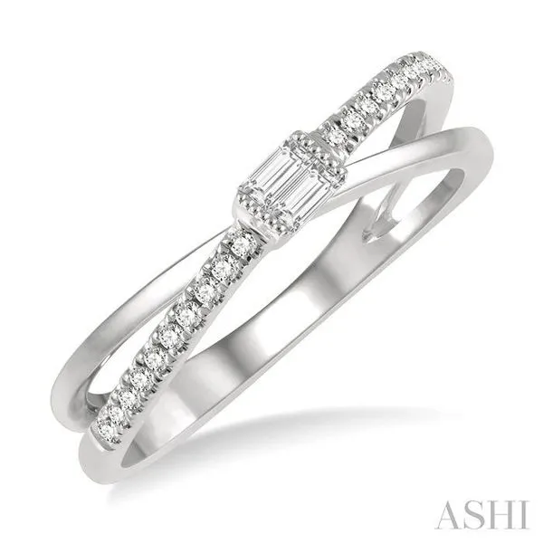 (319) 752-31961/6 Ctw Criss Cross Baguette and Round Cut Diamond Fashion Ring in 14K White Gold