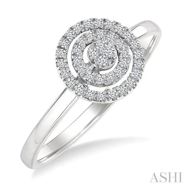 (319) 752-31961/6 Ctw Double Halo Round shape Petite Round Cut Diamond Fashion Ring in 10K White Gold