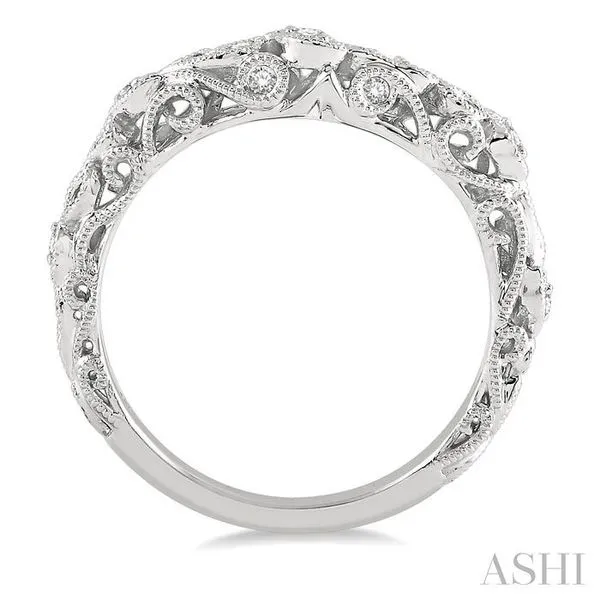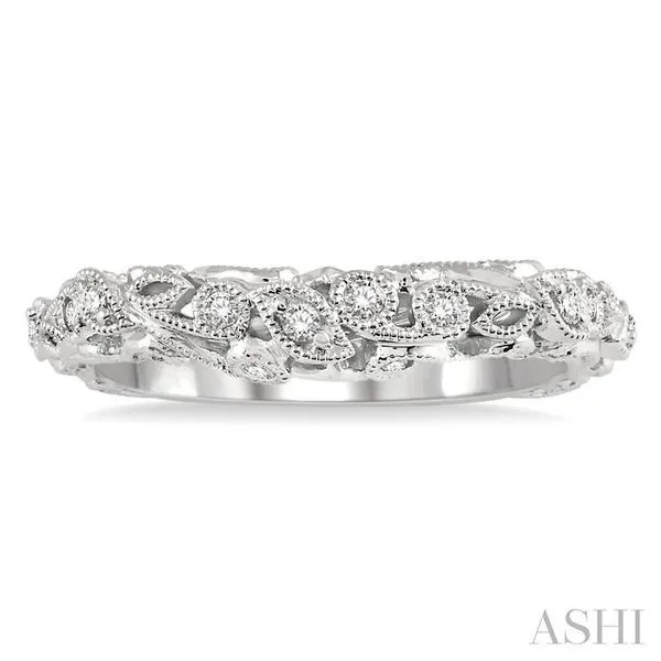 (319) 752-31961/6 Ctw Lattice Leaf and Circular Motif Round Cut Diamond Wedding Band in 14K White Gold
