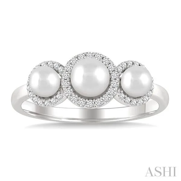 (319) 752-31961/6 Ctw Past, Present & Future 4MM & 5MM Cultured Pearl and Round Cut Diamond Halo Ring in 14K White Gold