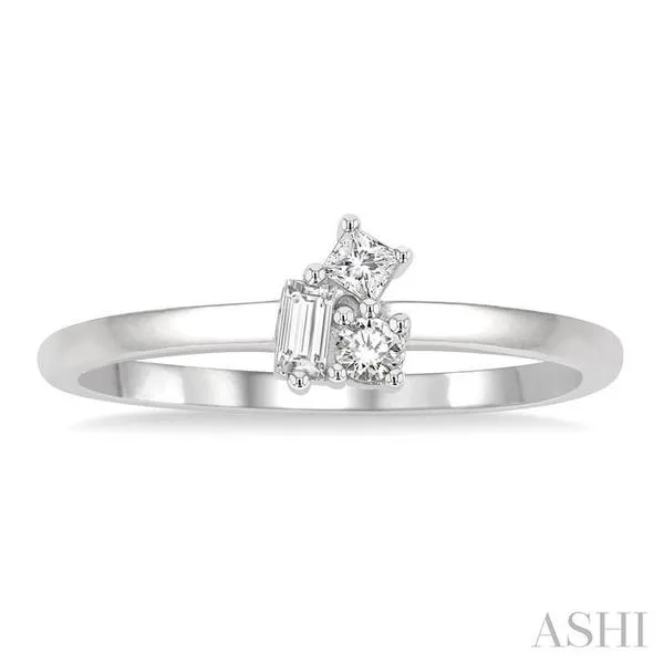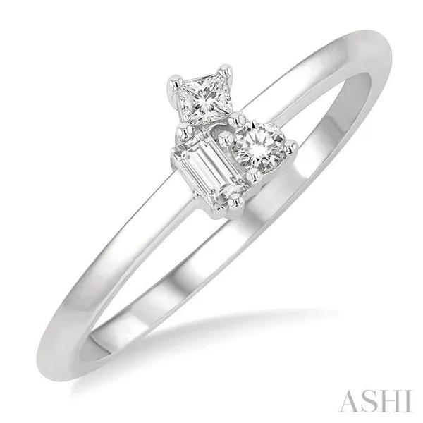 (319) 752-31961/6 Ctw Petite Tri-Stone Scatter Princess, Baguette & Round Cut Diamond Fashion Ring in 10K White Gold