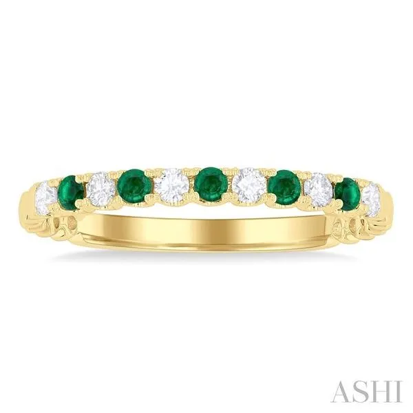 (319) 752-31961.75 MM Emerald and 1/6 Ctw Round Cut Diamond Precious Wedding Band in 14K Yellow Gold