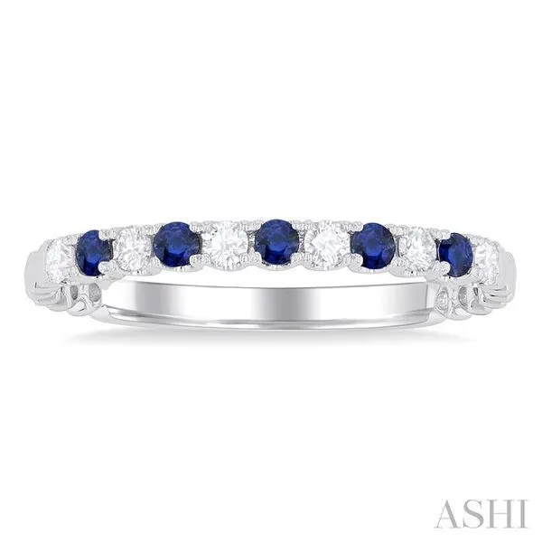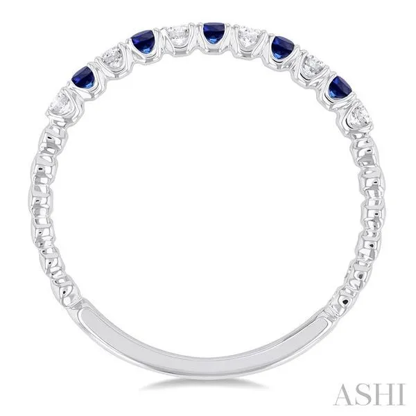 (319) 752-31961.75 MM Sapphire and 1/6 Ctw Round Cut Diamond Precious Wedding Band in 14K White Gold