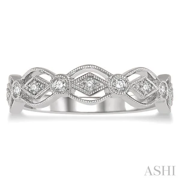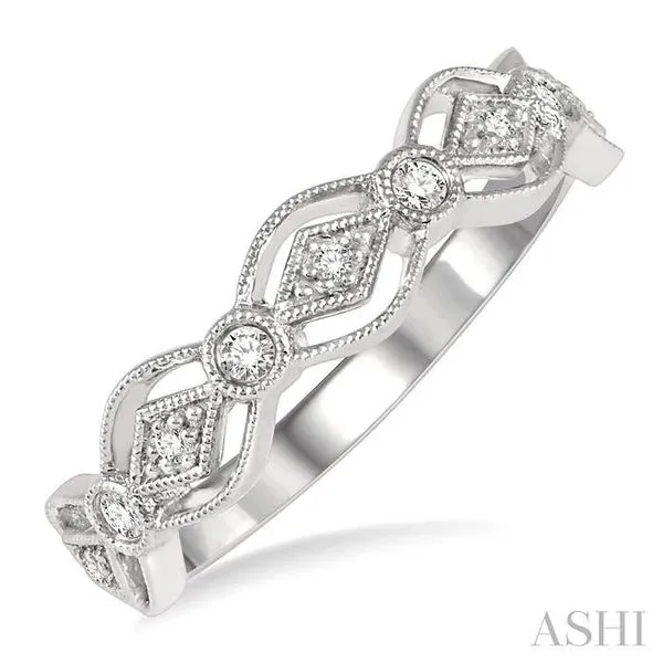 (319) 752-31961/8 Ctw Encased Diamond & Circular Shape Mount Round Cut Diamond Fashion Band in 14K White Gold