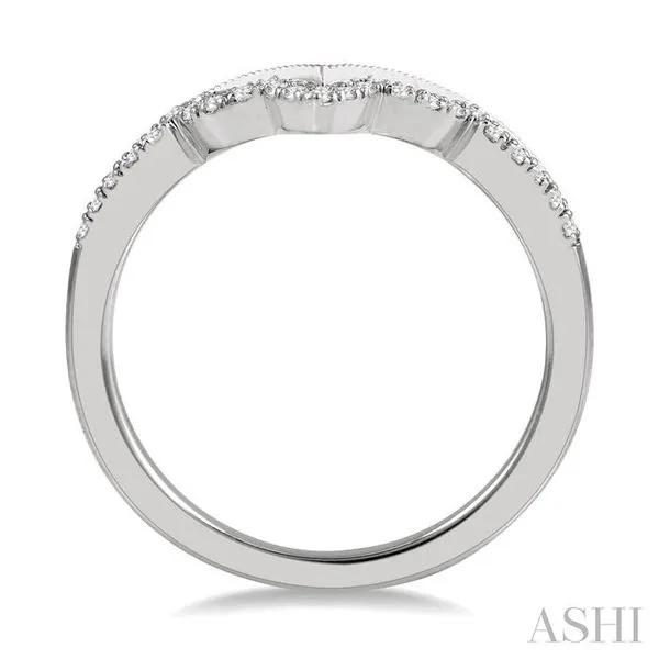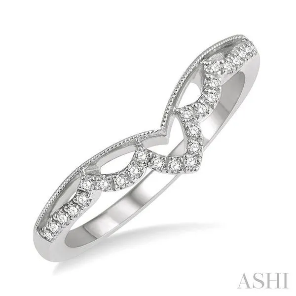 (319) 752-31961/8 Ctw Milgrain Chevron Center Scallop Base Round Cut Diamond Wedding Band in 14K White Gold
