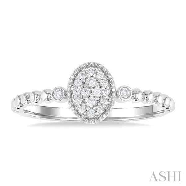 (319) 752-31961/8 Ctw Petite Bead Shank Oval Center Round Cut Diamond Fashion Ring in 10K White Gold